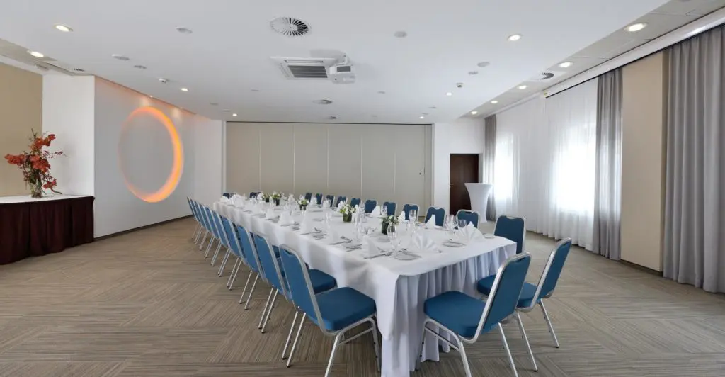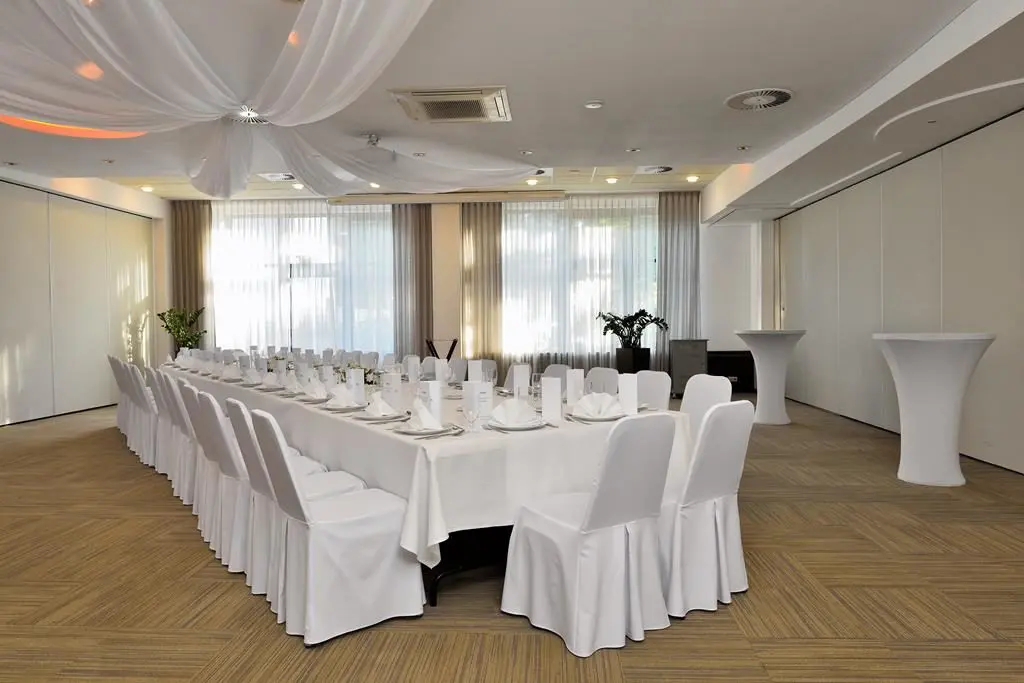 Na parterze znajduje się sala restauracyjna i trzy sale konferencyjno – bankietowe (A,B,C) połączone systemem mobilnych ścian. Dzięki temu istnieje możliwość elastycznej aranżacji przestrzeni i połączenia restauracji z salami, łącznie 600 m² powierzchni.